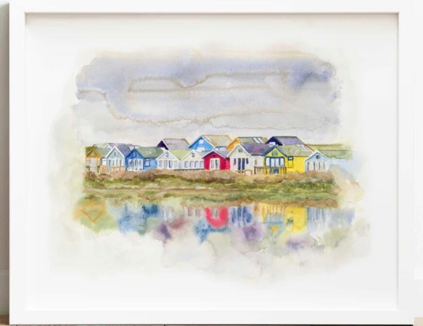 Original Painting, Framed Watercolour Mudeford Dorset Beach Hut Art - SOLD is backordered and will ship as soon as it is back in stock.